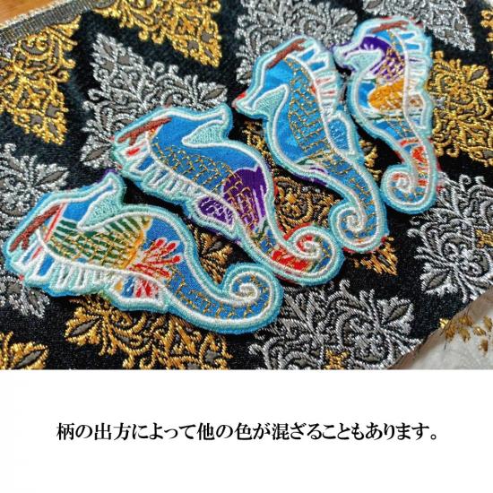 タツノオトシゴをモチーフにしたデザインが特徴で、豪華な色彩と細やかな模様が美しい一品です。